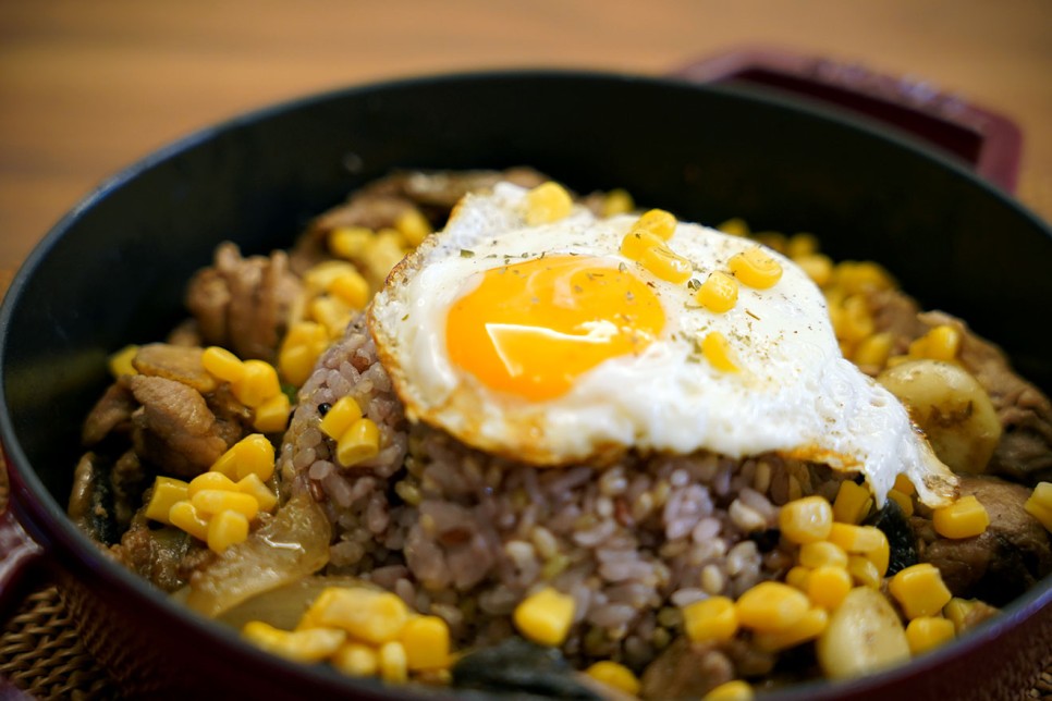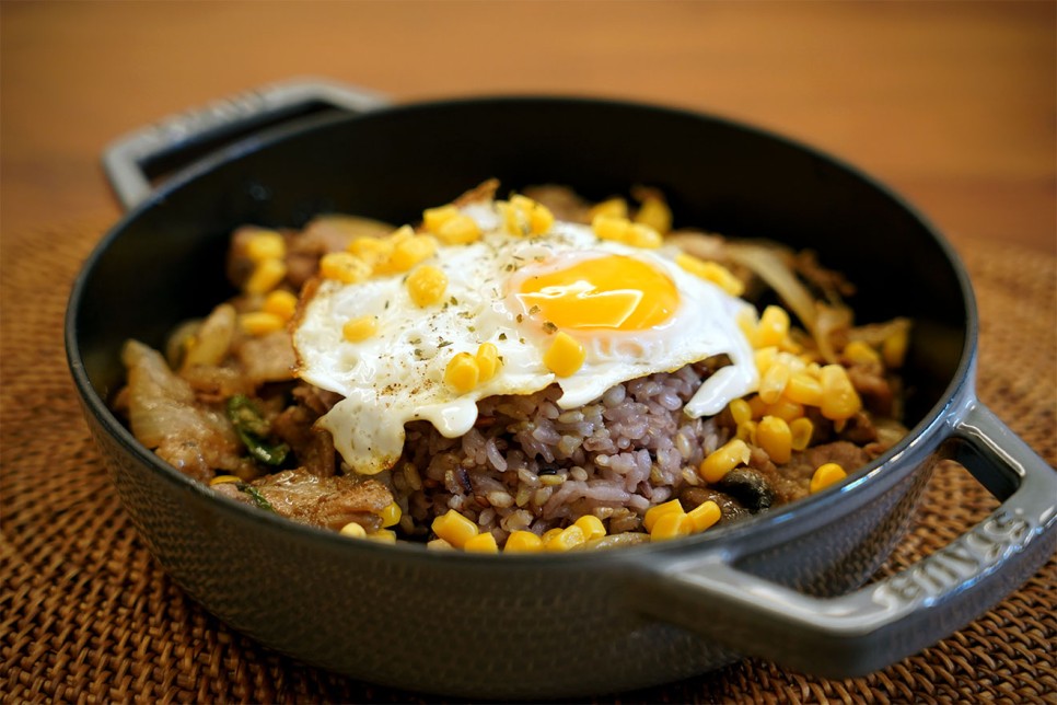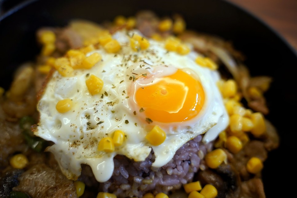 그 위에 계란후라이와 콘, 후추 등을 뿌리면 콘버터 고기볶음 끝.