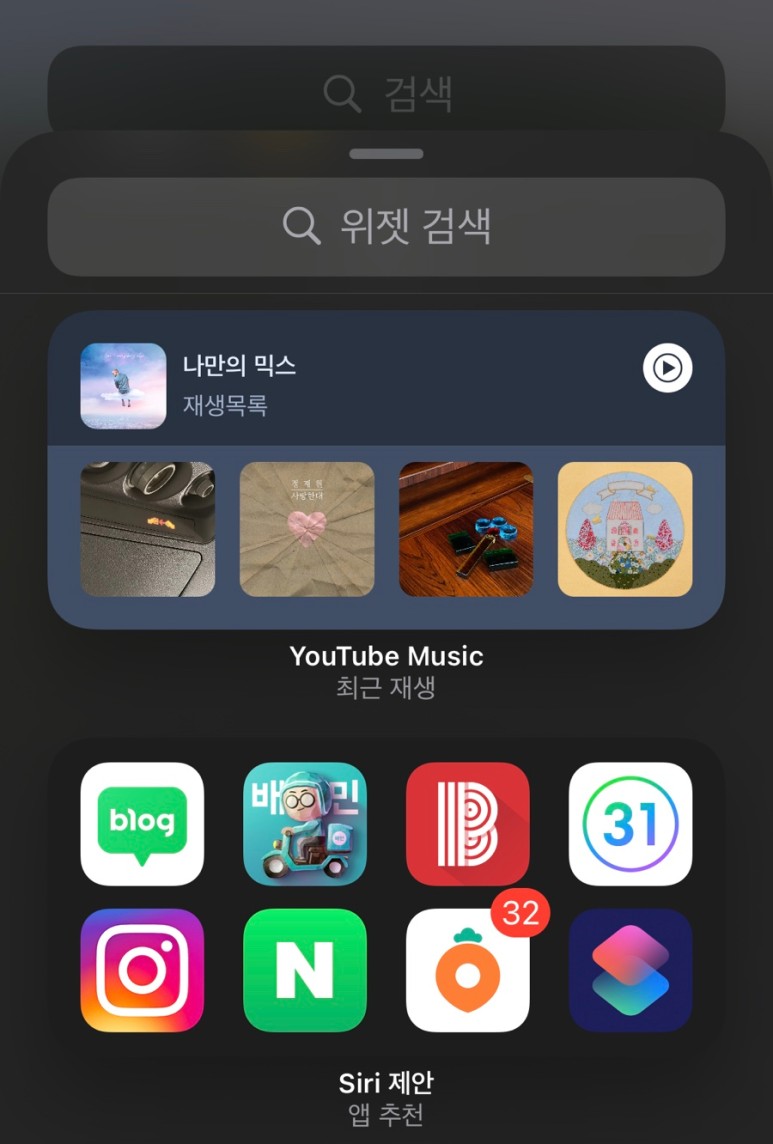 위젯은 각자 본인이 많이 사용하는 앱! 또는 앱을 굳이 눌러 들어가지 않아도 쉽게 내용을 확인하고 싶을 때 사용하면 됩니다.