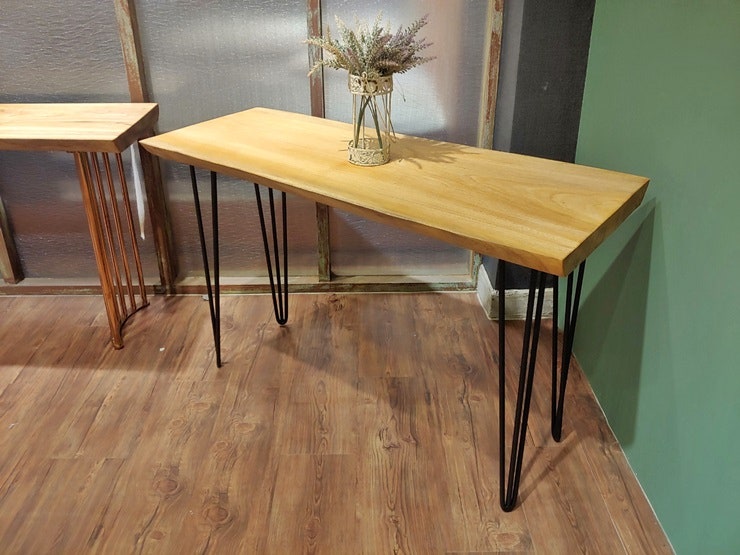 1500 size 골드 스틸렉 콘솔 + 1200 size 블랙 스틸렉 콘솔 두 가지 형태로 제작된 우드 슬랩 콘솔 테이블은 공간을 활용적으로 사용하도록 만들었습니다. 콘솔 용도로도 노트북 책상으로도 안성맞춤인 우드 슬랩 콘솔 테이블 활용도가 높아 좋습니다.