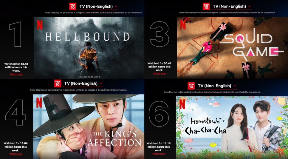 최근 웹툰 원작 드라마 <지옥>이 공개된 지 24시간 만에 넷플릭스(Netflix) ‘글로벌 톱10 TV 프로그램’ 순위에서 1위를 차지한 소식이 화제가 됐습니다. 이미 <오징어 게임>, <연모>, <갯벌 차차> 등 한국 드라마가 차트 상위권을 점령하며 전 세계인의 사랑을 받고 있음을 입증하고 있습니다.