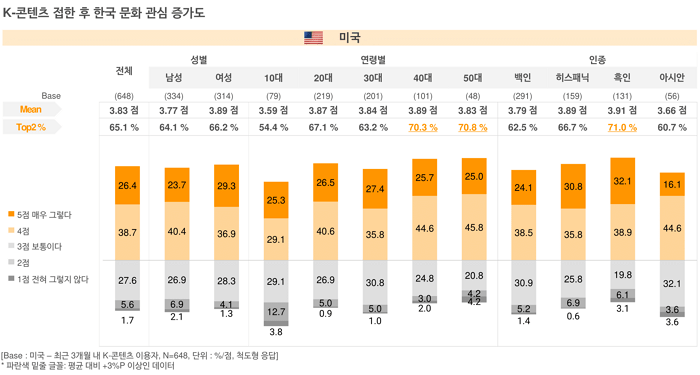 [▲K-콘텐츠 접 후 한국문화에 대한 관심증가도 ≪오픈서베이 미국 콘텐츠 트렌드 리포트 2021≫