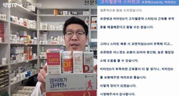 코큐텐, 비타민D 복용으로 스타틴 부작용(근육통 등)이 줄어든다는 의미는 아니지만 둘 다 안전하고 가격도 저렴한 편이고 어차피 보충해주면 좋은 제품으로 스타틴 복용자에게 가성비가 좋다고 평가한다.그래서 스타틴 복용자가 코큐텐, 비타민D를 따로 구입해 먹어도 된다는 결론을 내리고 있습니다.
