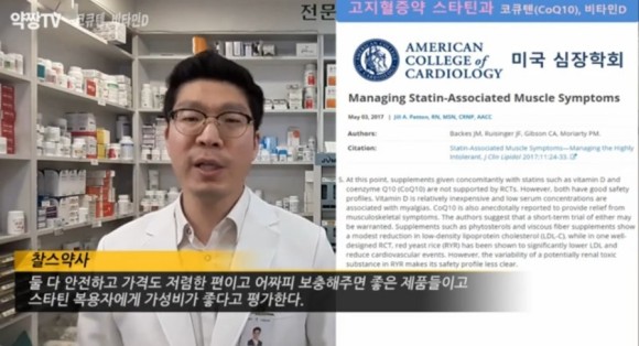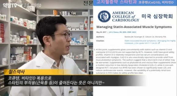 하버드 의대 자료에 따르면 스타틴 약을 복용하면 코엔자임큐텐이 감소한다 그러나 코큐텐을 먹는다고 근육통의 부작용이 줄어드는 것은 아니다.근육통이 줄어들 수도 있고 그렇지 않을 수도 있다.케이스 바이 케이스다.”