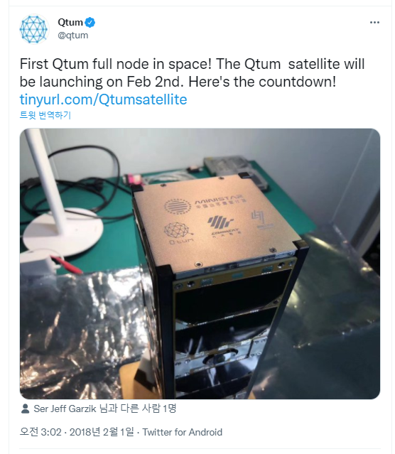 귀여운 Qtum 인공위성… 특히 세계 최초로 암호화폐 인공위성을 쏘아 올렸다. 하지만 저런 귀여운 위성으로 어떤 퍼포먼스를 펼쳤는지는 아무도 모른다. 전 세계인이 퀀텀코인을 사용하게 하겠다는 인공위성의 목적은 이미 역사 속으로 사라진 지 오래다.