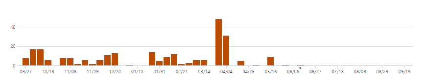 올해 불장이 시작돼 5월 8일 정점을 찍은 뒤 Qtum의 커미트도 사라진다. (6월 이후에는 개발하는 척도 하지 않는다)
