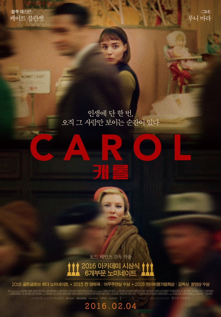 제가 ‘한국영화파’로 블로그를 시작해서 아카데미, 칸, 베니스, 베를린영화제 같은 지루한 영화제의 영화를 다시 보기 시작한 게 2018년부터라고 할 수 있을 것 같아요. 제가 콜 미 바이 유어 네임을 접했을 때 정말 미친 듯한 소재를 가진 영화를 주류시장으로 끌어내다니 감탄했는데, 이보다 앞선 퀴어 멜로 영화를 칸에서 미리 알아봤어요. 2016년작 영화 <캐롤>은 정말 압도적인 성인 멜로, 리얼 멜로 영화라고 해도 좋을 만큼 로맨스 재질의 퀴어 영화였습니다. 좋아한다는 입소문으로 퀴어 영화를 보기 시작했고 처음 본 극장에서 못 본 걸 무척 후회했던 작품이죠. 대드는 수준에 빠뜨리려고 했네요. 루니 말라의 연기를 극찬했지만 전 개인적으로 외롭고 쓸쓸했던 케이트 블랑셰트의 연기를 좋아했어요. 이 영화 <캐롤>은 케이트 블랭킷이 아니었다면 이렇게 몰입감을 주지 못했을 영화라고 생각해요.