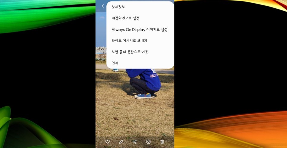 변경하고 싶은 사진을 선택해서 바로 적용하는 것이 아니라 ‘끄기’ 부분을 넣고 ‘화면 맞추기’를 선택해서 확인을 하면 그 사진이 휴대폰 화면에 맞게 설정된다는 것을 알 수 있습니다.ㅎ