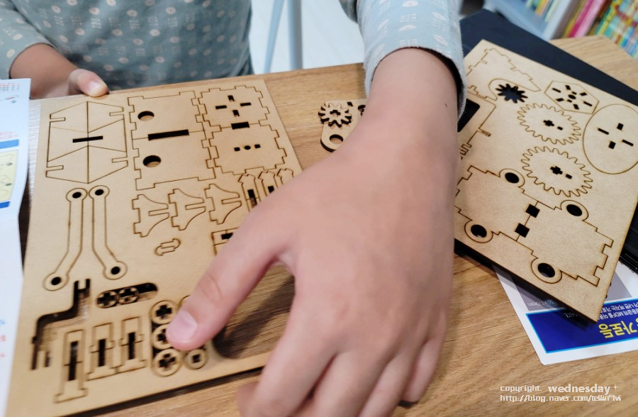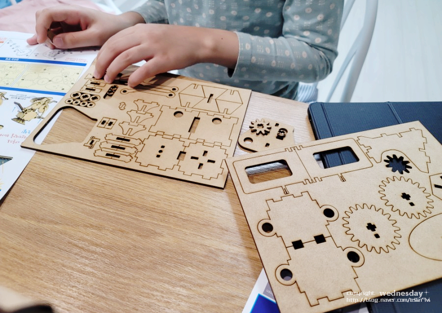 친환경 MDF판을 레이저 작업으로 만들어 놓은 탓인지 나무에 탄 냄새가 난다.