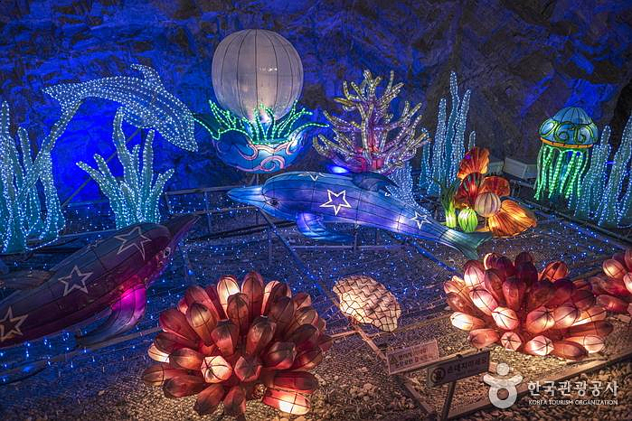 동굴 곳곳에 네온을 이용한 조형물이 있어 신비로운 분위기를 자아낸다. 전갈이나 지네, 호랑이 등 조각가가 만든 예술품처럼 보이는 조형물을 감상하며 이곳저곳을 걷다 보면 시간 가는 줄 모릅니다. 돌고래와 조개, 산호초 등 아름다운 조형물이 바닷속의 신비를 보여주는 것 같습니다.