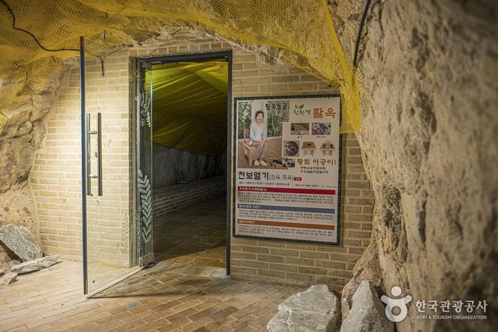 방문객이 가장 먼저 만나는 공간은 건강 테라피존으로 친환경 활옥을 체험할 수 있는 곳으로 동굴에서 나오는 음이온과 원적외선이 몸과 마음을 건강하게 해줍니다. 활석과 황토석으로 만든 1인용 황토 아궁이를 설치하였습니다.