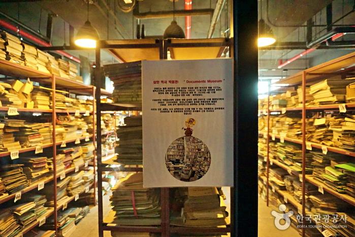 옛 계단을 내려가면 삼탄역사박물관과 현대미술관(Contemporary Art Museum, CAM)이 나옵니다. 삼탄역사박물관에서 가장 주목받은 것은 작은 도서관만한 공간으로 가득 찬 서류입니다. 수십 년간 모은 직원 급여명세서와 건강관리표 등 각종 행정문서가 지나간 시대를 증언합니다.