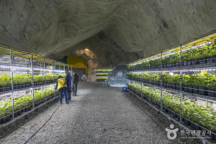 동굴농원도 이채롭다. 갱도에 약 1200㎡의 공간을 마련해 고추냉이를 시험 재배하고 있습니다. 고추냉이는 온도에 민감한 작물이지만 1년 내내 일정한 온도를 유지하는 동굴 특성상 재배에 적합하다고 합니다.
