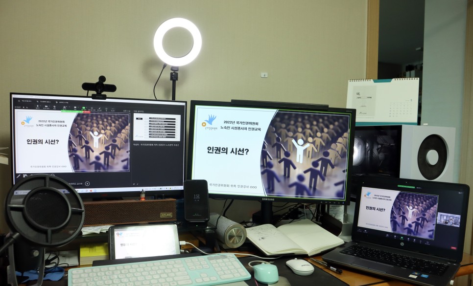 노숙인 시설 종사자를 대상으로 한 인권 강의, 오늘을 시작으로 5월 강의 횟수가 7회, 다음달 6회가 예정돼 있다. 강의를 진행하지만 신종 코로나바이러스 감염증 확진으로 아직 컨디션이 좋지 않다. 인권 강의를 하는 동안 자꾸 입이 마르고 목이 마르는 바람에 얼마나 힘들었는지. ㅠ.ㅠ어쨌든 제가 할 수 있는 최선을 다해 올해 첫 노숙인 시설 종사자 인권 강의를 무사히 마쳤다. 다음 인권 강의는 일주일 뒤다.