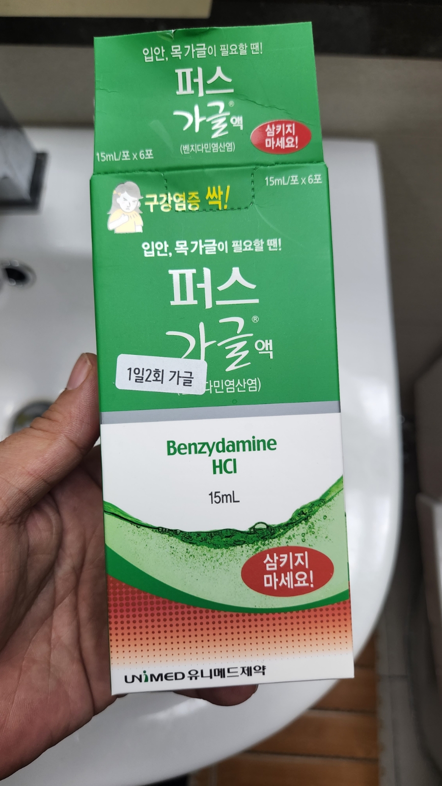 다음부터 편도선이 붓거나 하면 이 파스 가글약을 애용해야 한다.유니메드 제약 제품입니다.