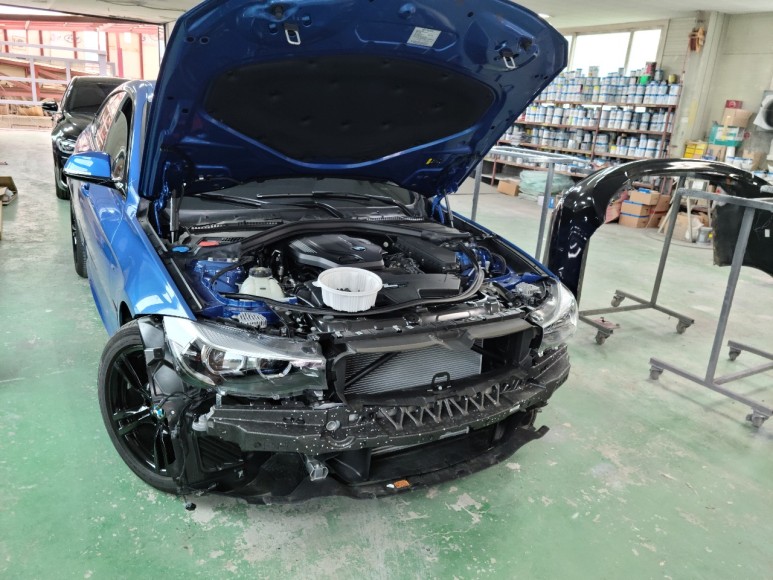 앞 범퍼는 탈부착하여 판금 도색을 하고 유리막 코팅 보수까지 이루어집니다.이러한 작업은 모두 상대방의 보험 회사로부터 지급 보증을 받아 실시합니다.고객은 신경 쓰지 않고 보험을 진행하고 있습니다.