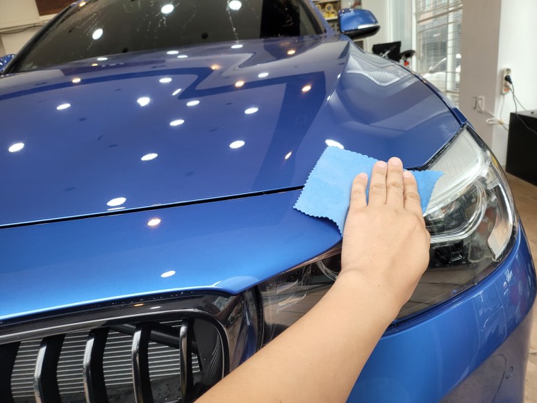 도장 마감과 유리막 코팅을 실시합니다.도장 마감은 판금 도장 중 발생하는 먼지나 이물질을 제거하고 오렌지 필이 좋지 않을 경우 샌딩 후 레벨링까지 합니다.그래야 좋은 퀄리티를 얻을 수 있어요.