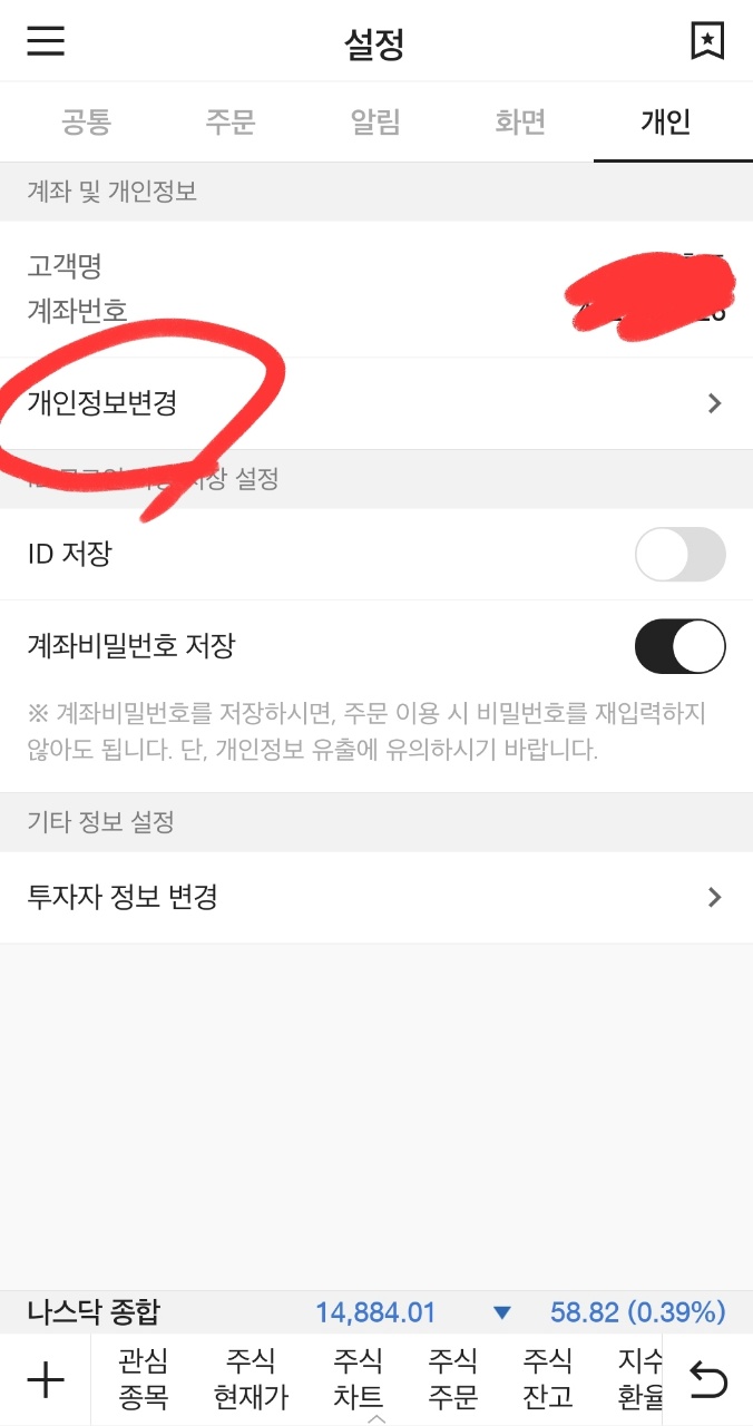 개인정보 변경 클릭.