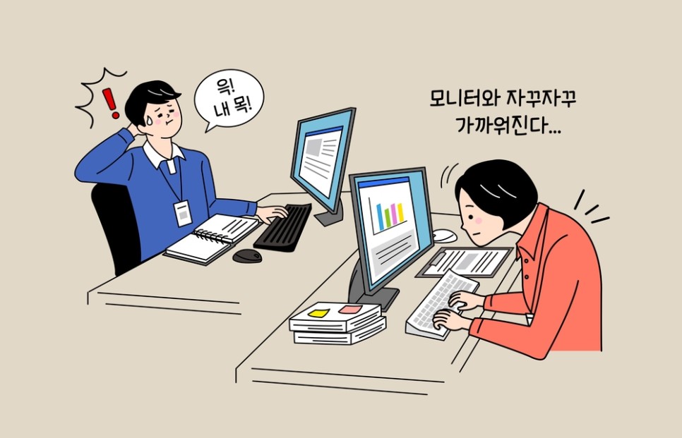 스마트폰이나 컴퓨터를 이용하는 시간이 늘어날수록 딱딱해진 목과 어깨 근육통은 더 심해질 수밖에 없는데요. 이는 단지 통증과 단단한 느낌뿐만 아니라 지속되는 피로감과 이어 업무와 학업능력 저하 등의 다양한 문제를 파생시킬 수밖에 없었습니다. 또 옆에서 봤을 때 특히 어깨를 기점으로 목과 얼굴이 앞에 5cm 이상 많이 나오게 되면 이는 거북목 증후군을 의심해볼 수 있었습니다.