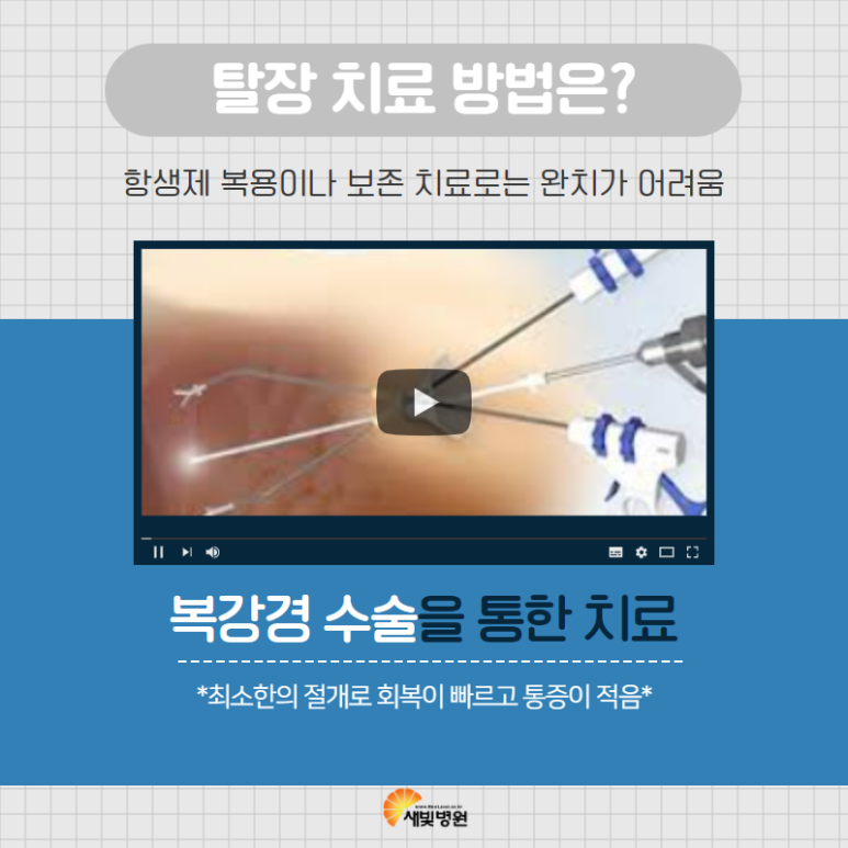 탈장 증상은 항생제를 복용하거나 보존 치료로는 완치가 어렵습니다. 수술을 진행하는 것이 가장 좋은 선택인데요.