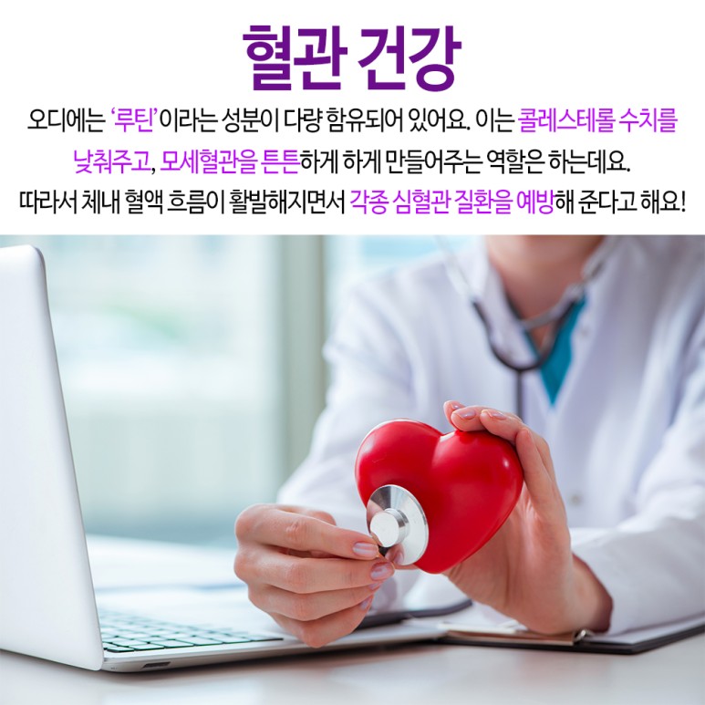 오디에는 ‘루틴’이라는 성분이 많이 함유되어 있습니다.