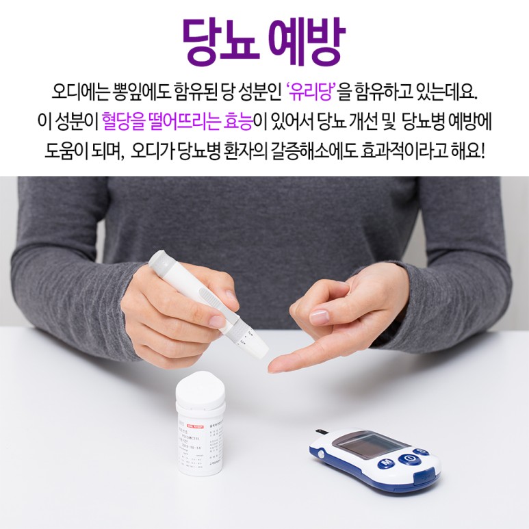오디에는 뽕잎에도 함유된 당 성분 ‘유리당’이 함유되어 있습니다.