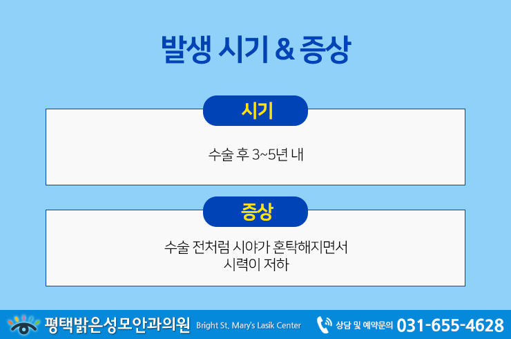 후발 백내장은 관리를 어떻게 하느냐에 따라서도 결과가 다를 수밖에 없습니다. 개인이 관리해야 할 사항도 있지만 무엇보다 수술받은 병원에서 철저한 사후관리 및 검진을 받는 것이 좋고 1:1 사후관리를 진행하고 있어 안심할 수 있었습니다. 장기간 방치하면 좋지 않은 백내장을 효과적으로 해결하세요.