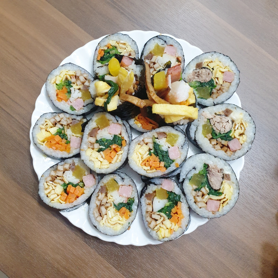 임신 11주차, 12주차 증상 입덧이 많이 좋아졌다는 기억이 확실하다.그 시기에 앨범을 보면.음식 사진이 엄청 많아ㅋㅋㅋㅋㅋㅋㅋㅋㅋㅋㅋㅋㅋㅋㅋㅋㅋㅋㅋㅋㅋㅋㅋㅋㅋㅋㅋㅋㅋㅋㅋㅋ임신초기에도 김밥은 먹고 싶어져서 자주 먹던 음식인 타율이 주려고 김밥을 말았는데 맛있게 완성되어서 기뻤다♥