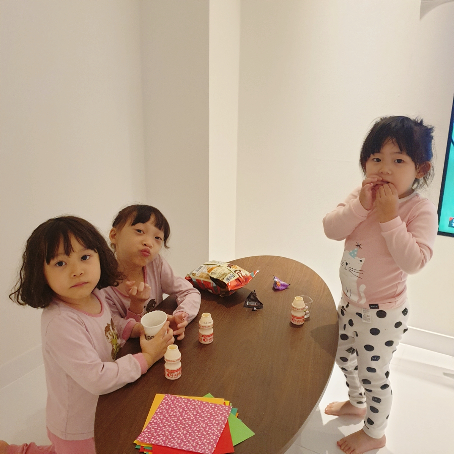 지민, 민서언니를 너무 좋아하는 다율:) 시댁은 아들을 원했는데… 내 주변에 딸과 자매가 너무 많아서^^나도 의외로 둘째딸이 여자이길 바랬던거 같아 다행이도 다율이도 동생이 있었으면 좋겠어! 라고 후후.