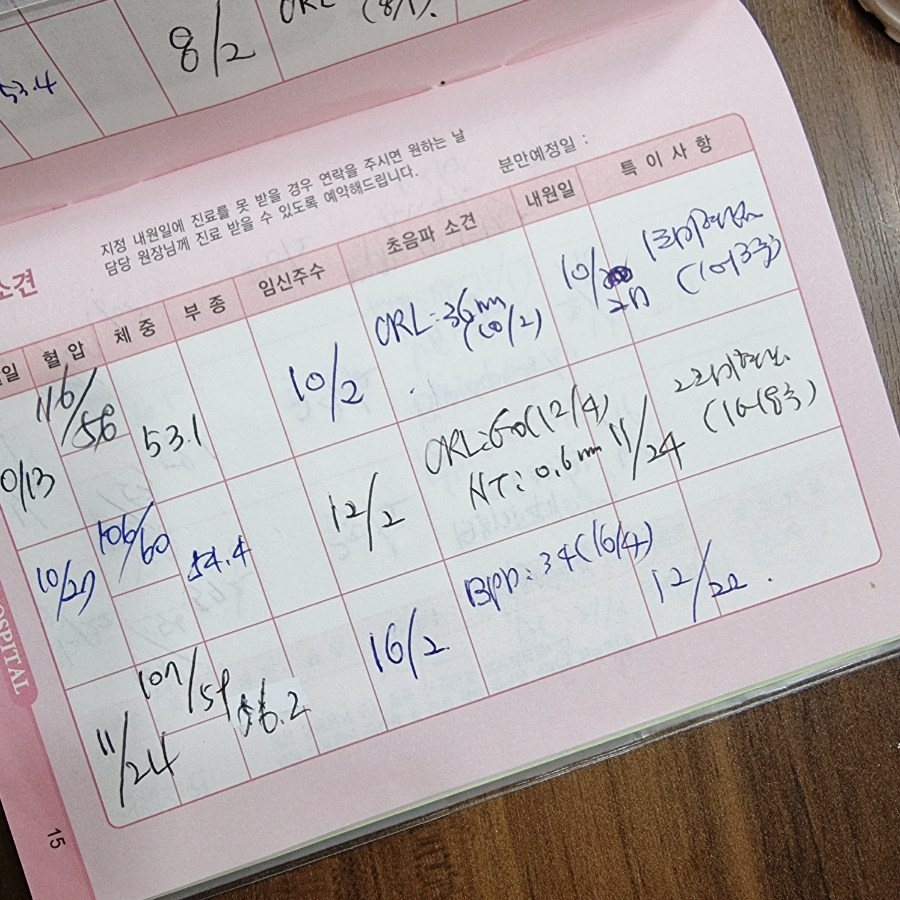 꾸준히 기록하기로 했는데 너무 오랜만에 임신 기록을 가져왔어요.저는 고위험 산모이기 때문에 보통 산모는 한 달에 한 번 내원하지만 임신 8주까지는 매주, 임신 12주까지는 2주마다 내원하여 진료를 받았습니다.기억에 남을 수 있도록 임신 11주, 12주 차 증상과 초음파 사진을 기록해 볼까 합니다.