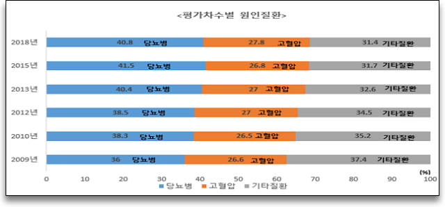 분석 결과에 따르면 2018년 주 2회 이상 혈액투석을 실시한 만 18세 이상 환자 3만1238명 중 68.6%인 2만1440명이 당뇨병 또는 고혈압을 앓고 있었다. 당뇨병이 1만2749명(40.8%), 고혈압이 8691명(27.8%)이다.