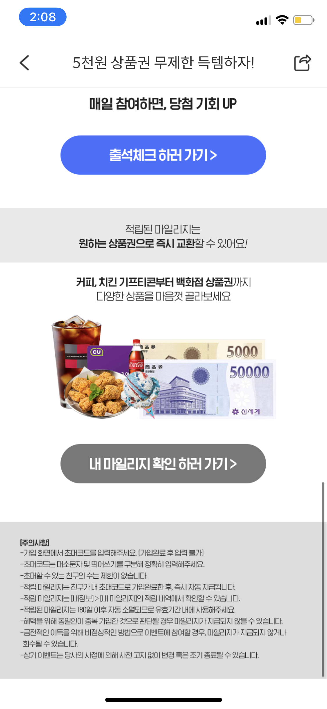 일상 카페는 모바일 상품권을 할인하고 구입할 수 있는 앱입니다. 할인율은 10%안팎에서 행사를 하면 15%까지 불어날 수 있습니다.모바일 중고 거래 애플리케이션보다는 할인율이 떨어지는데 주인이 추천하는 이유는 바로,,, 카카오 톡처럼 선물하는 기능이 있다는 것입니다. 예쁜 카드나 문구를 쓰고, 카카오 톡 메시지나 등에서 보낼 수 있습니다.보통 친구들/지인의 생일에 카카오 톡으로 할인 10원도 안 받고 보내잖아요. 앞으론 떳떳하게 할인 받아 일상 카페를 이용하면 좋겠어요.● 출석의 혜택:5~20,000점(보통 5점)● 친구 초대 혜택:100점 ● 유효 기간:다음 달 말>>일상 카페 앱 신규 가입에 가-추천자 코드:3C0FB04F
