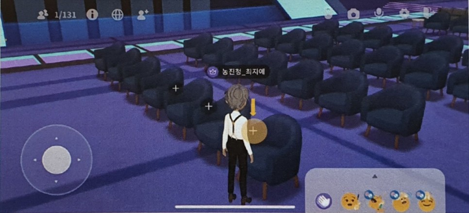 자리를 찾지 못할 경우 사전에 기획된 행사의 진행을 돕는 아바타를 통해 안내를 받을 수도 있습니다.
