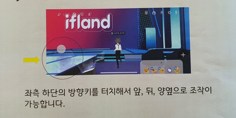 왼쪽 아래의 방향키를 터치하여 전후좌우로 이동시킵니다.