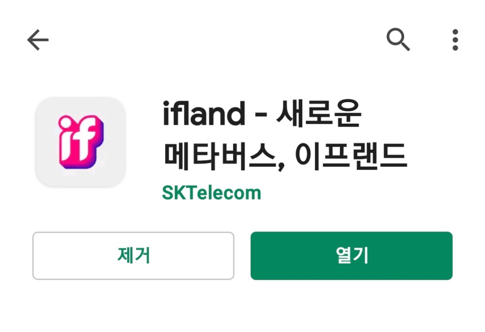 - 구글 플레이스토어에서 메타버스 또는 ifland를 검색하여 if 아이콘을 다운로드 합니다.