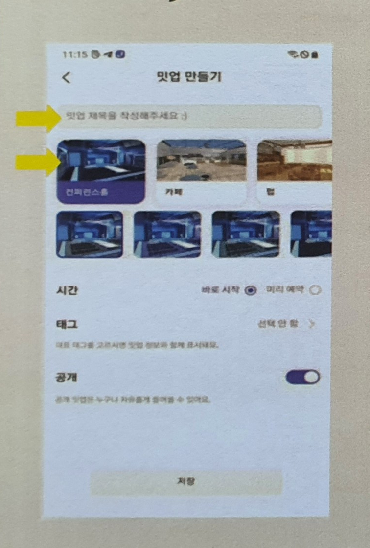 제목을 입력하면 생성되며 공간, 시간 공개 여부는 자동으로 설정되며 제목은 최대 20자까지 가능합니다.