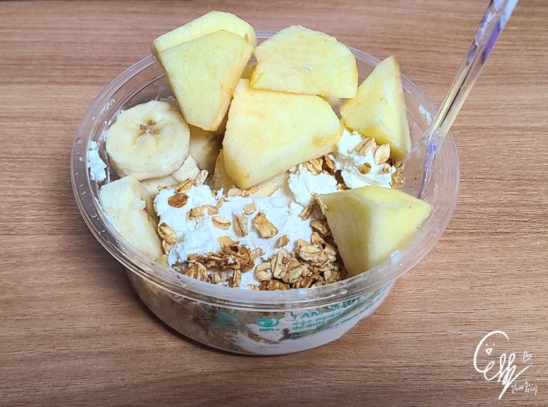 뭐라고요?요구르트 먹을 타이밍인데, 딕릭 요구르트+그라놀라+사과+바나나 조합을 만든 사람은 인간적으로 상을 줘야 되잖아.
