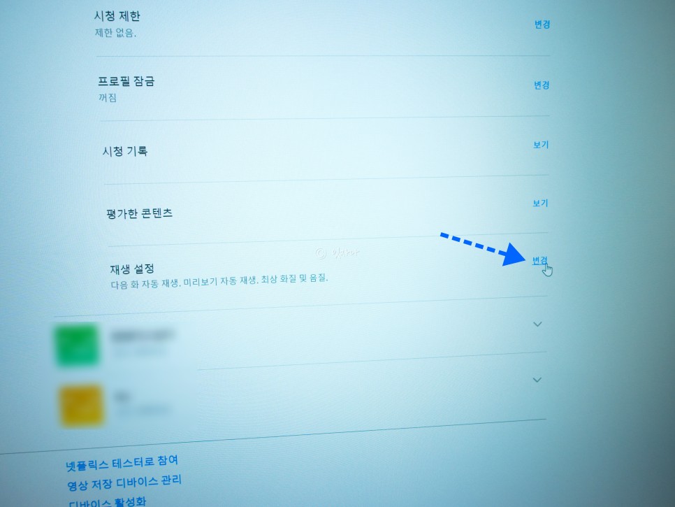 준비가 완료되면 프로필을 누르고 계정을 클릭합니다. 그런 다음 프로필 목록에서 내가 사용할 프로필을 눌러 재생 설정 변경을 클릭합니다.