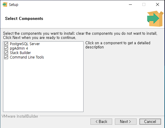 PostgreSQL 설치 방법 설치가 완료되면 추가로 PostGIS 패키지 등을 설치할 수 있는 StackBuilder에 대한 것도 나오는데 필요한 사람에 한해 설치를 진행하면 될 것이다.