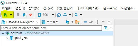 3. DBeaver 설치 및 Postgres 연동하는 DBeaver는 MySQL Workbench와 같이 SQL 클라이언트이자 데이터베이스 관리 툴이다. 오픈소스이며 Community Edition을 사용하면 라이선스가 무료이며 자바 개발 툴 중 하나인 이클립스 아이디를 기반으로 만들어진 툴이다. 설치 파일은 다음의 URL에서 다운로드하면 된다. https://dbeaver.io/download/Community Edition 21.2.4 Released on November 1, 2021(Milestones). It is free and open source(license). Also you can get it from the GitHub mirror . Enterprise Edition 21.2 Released on September 6, 2021 EE version web site:dbeaver.com Trial version is available. Windows Windows 64 bit(instal.dbeaver.io설치 방법은 간단한 것에, 이하의 내용에서는 Postgres와 연동하는 방법부터 설명한다. 아래 그림과 같이 DBeaver 왼쪽 상단에 표시되는 “새로운 데이터베이스 연결”을 클릭한다.